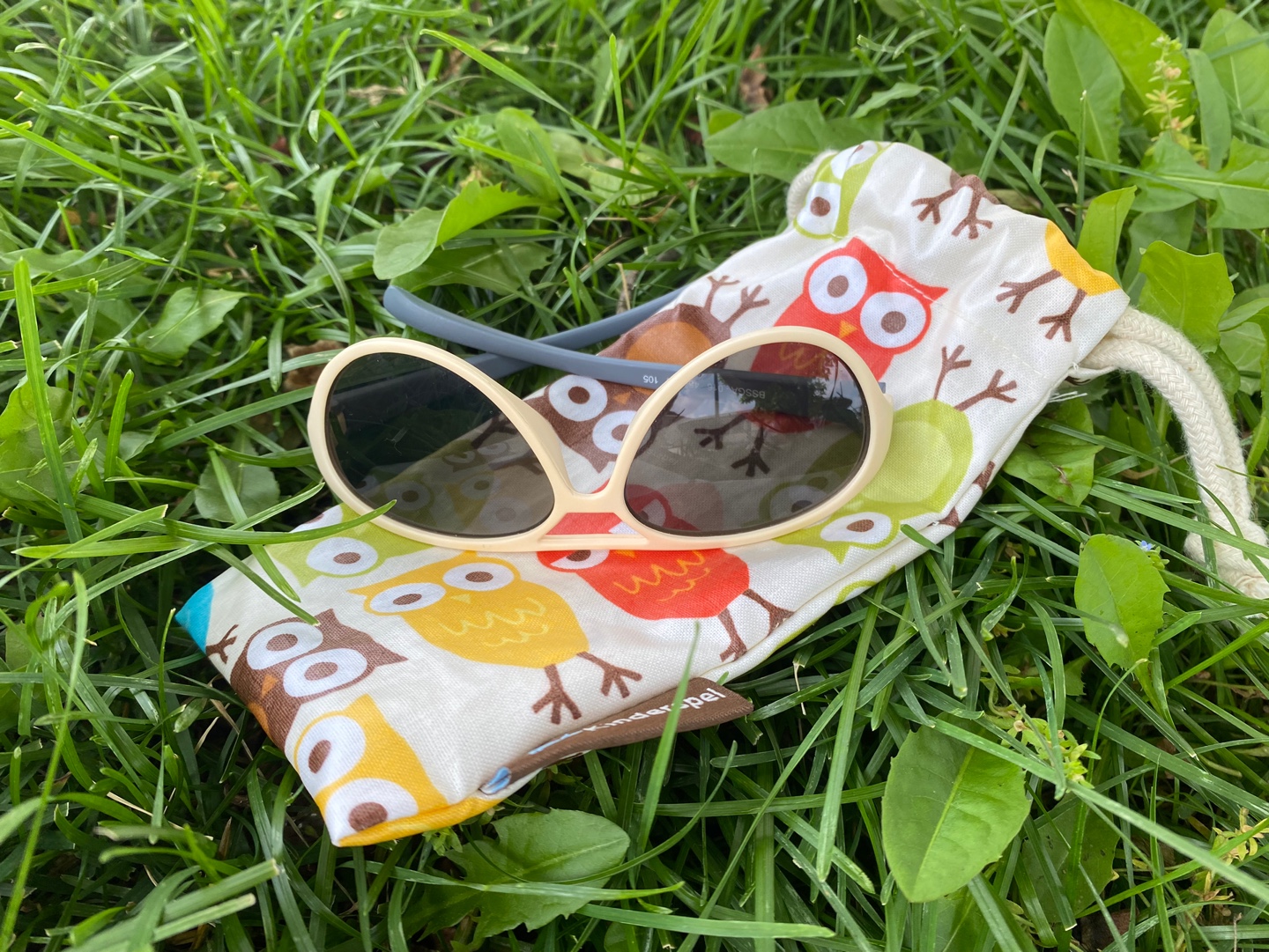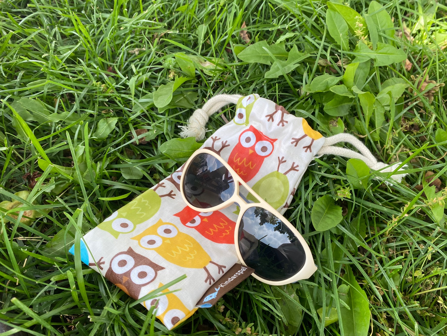 우리 아기 첫 선글라스는 킨더스펠이예요. 받아보면 어른 한뼘도 안되는 사이즈가 앙증맞고 귀여워서 웃음이 나올정도 :)
