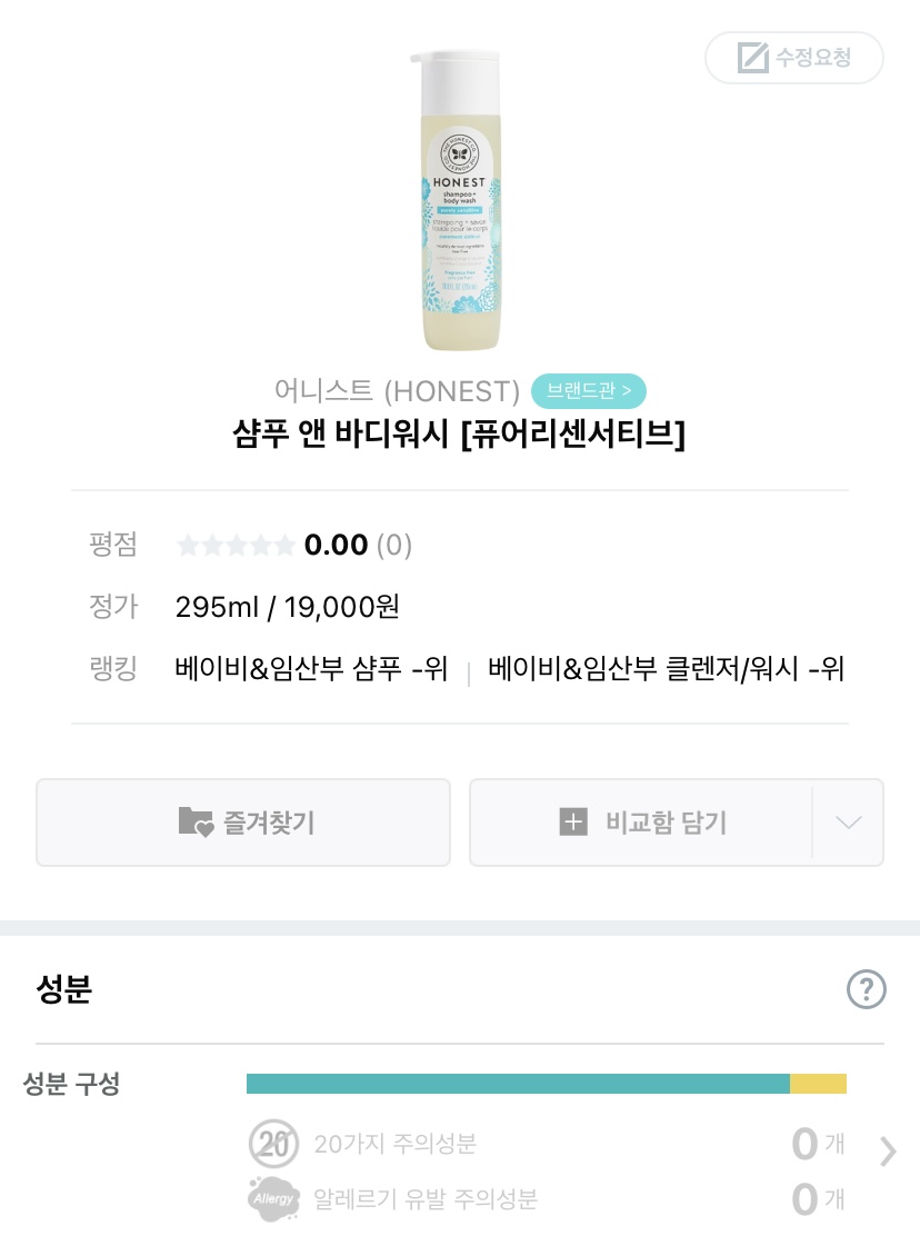 주의성분 0개, 알레르기 유발성분 0개로 괜찮아요