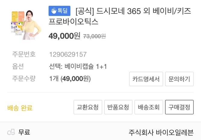 드시모네 베이비캡슐 1+1 49,000원 (무료배송)