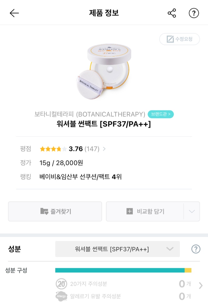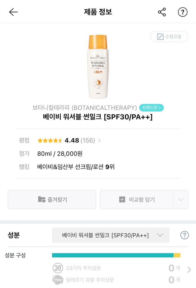 SFP지수보단 화장품 성분과 워셔블을 더 중요하게 봤습니다